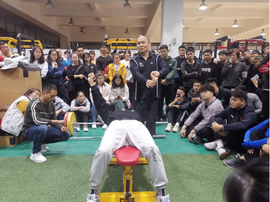 11月12日下午,在今年会官网游泳馆二楼体能实验室,汤仁圣博士通过现场指导演示等方式,阐述了体能与竞技水平之间具有的密切联系,介绍了新的体能训练理念方法以及相关科研成果。汤博士先给大家讲解了“如何科学的训练自己的上半身肌肉和下半身肌肉”的方法,其次从原理方面给予解答并列举若干训练实例,与同学们分享了运动后的放松按压动作。最后,对同学们提出的问题一一答疑解惑,让同学们亲自参与实验,乐在其中,以幽默风趣的语言和逐层递进的清晰表达,引得师生阵阵掌声,在场师生纷纷表示在此次讲座中受益匪浅,过讲座学习提高了科学健身的意识,更坚定健康运动的信念。