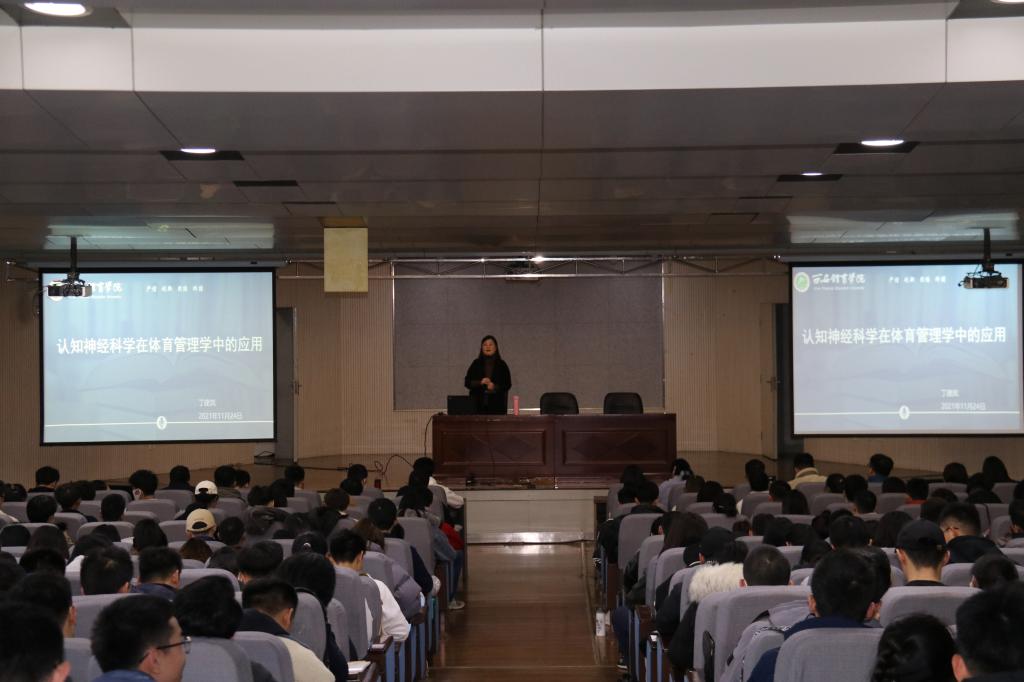 研究生部系列学术讲座第二场,2021年11月24日下午14:20在教学楼一楼报告厅如期举行。讲座由研究生部刘耀荣主任主持,体育经济管理学院的丁建岚副教授为此次讲座的主讲人,进行了《认知神经科学在体育管理学中的应用》的讲座,今年会研究生及部分教师共300余人聆听了该讲座。