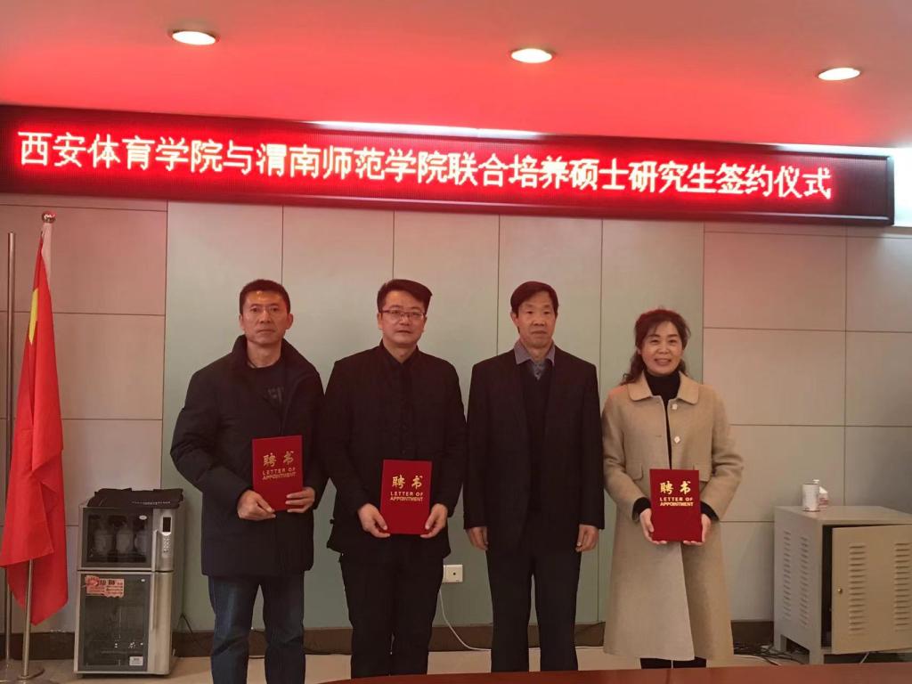 刘新民副校长和渭南师范学院副校长卢爱刚共同签署了联合培养硕士研究生协议书;刘新民副校长代表学校为联合培养外聘导师颁发了聘书。