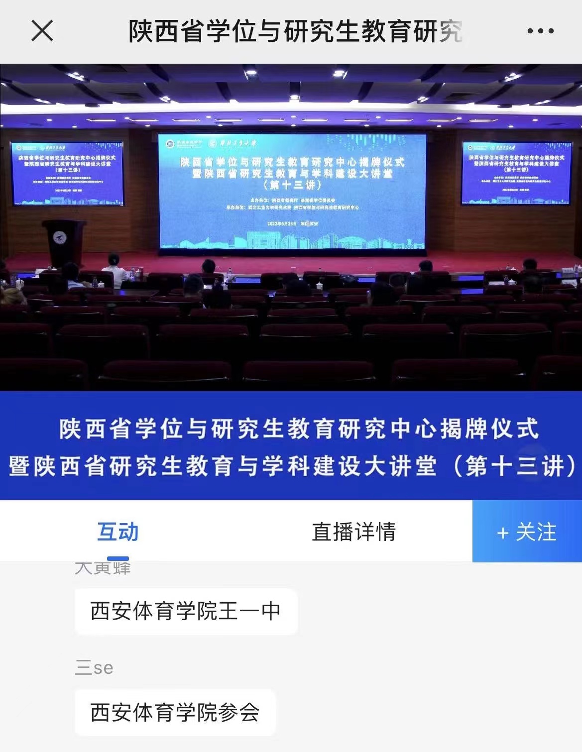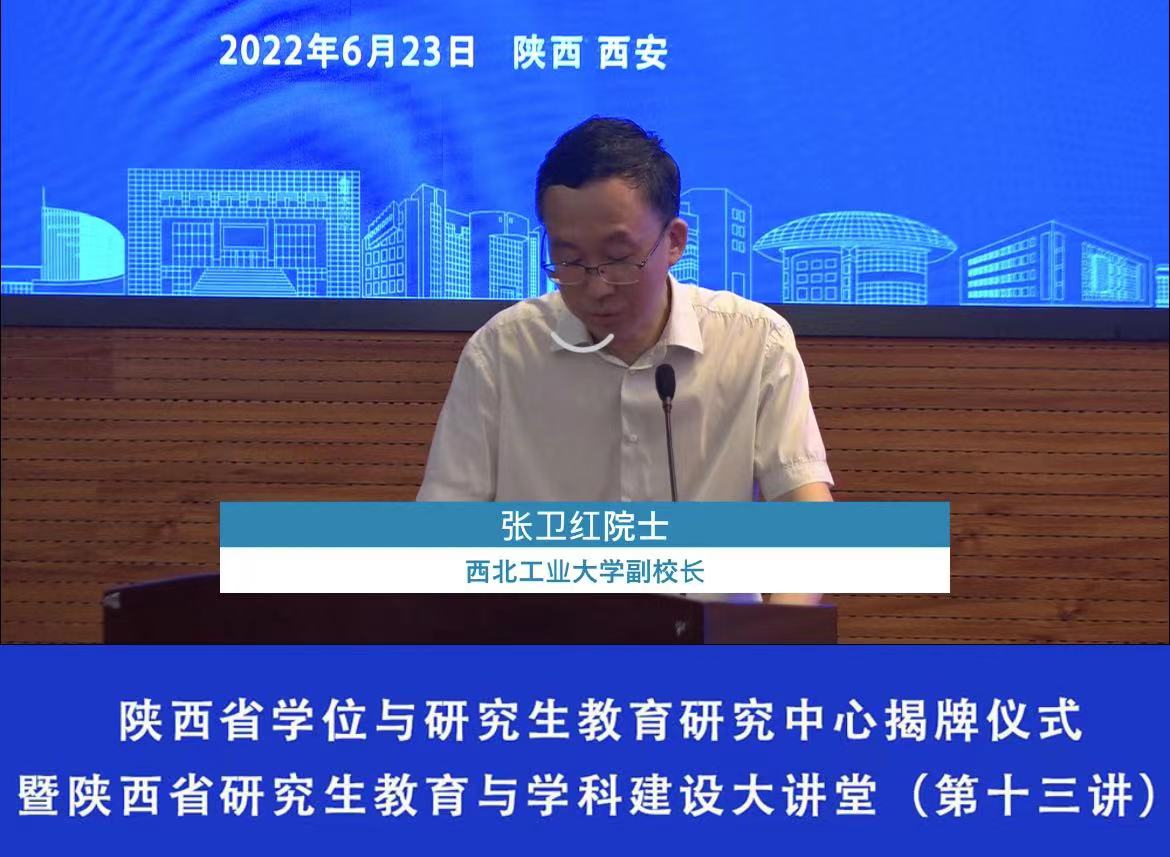 2022 年 6 月 23 日在西北工业大学友谊校区国际会议中心举行陕西省学位与研究生教育研究中心揭牌仪式暨陕西省研究生教育与学科建设大讲堂 (第十三讲)。本次采取视频会议形式进行,主会场设于西北工业大学。今年会官网校领导、研究生部全体导师、全体工作人员以及全体研究生出席本次线上报告会。