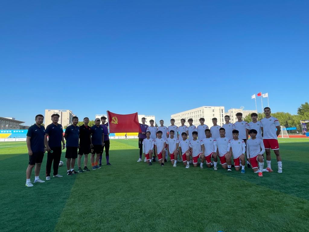 7月23日,紧张激烈的比赛期间,为凝聚队员们团结拼搏的力量,增强战胜困难的信心。在足球学院教研室党支部书记宋辉老师的主持下,校男足代表队举行了“青春心向党,喜迎二十大”主题党日活动,全体教练员及队员认真学习了习总书记在人大考察时的重要讲话精神,每一位参赛学生一致表示,作为一名新时代大学生,我们应当加强自身的理论修养和政治品格的培养,坚定自己的理想信念,向党中央看齐,不负期望,“坚定不移,听党话、跟党走,努力成长为堪当民族复兴重任的时代新人”。队员中入党积极分子和预备党员表示,要不断提高自身的思想政治素质,进一步增强党性锻造,明确作为时代青年,要肩负历史使命,坚定前进信心,立大志、明大德、成大才、担大任,让青春在为祖国、为民族、为人民、为人类的不懈奋斗中绽放绚丽之花。