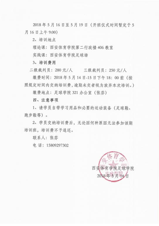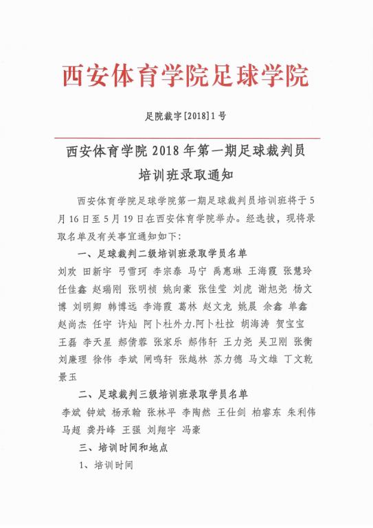 今年会官网2018年第一期足球裁判员培训班录取通知