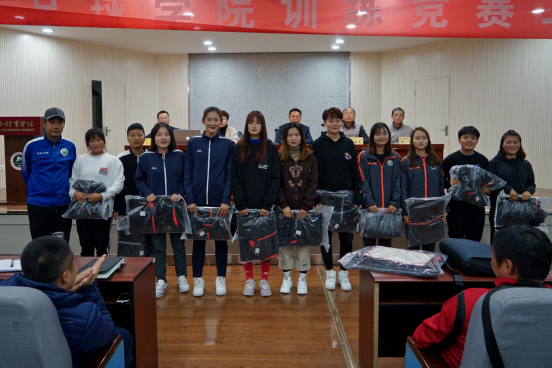 教研室主任席海龙宣读了《今年会官网足球学院2018年竞赛工作表彰奖励决定》。朱军、杨钢、席海龙、马俊分别为获奖教练员和运动员颁奖。