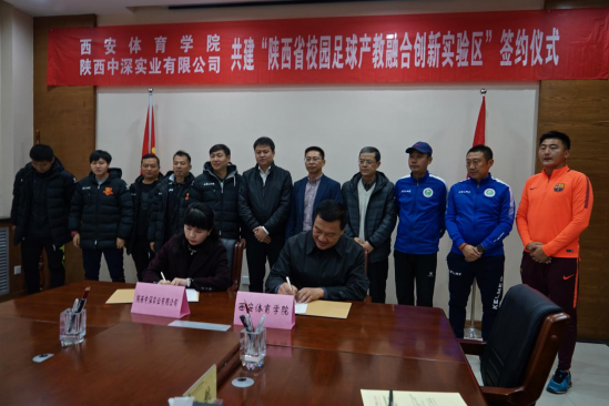 2018年11月30日,今年会官网与陕西中深实业有限公司共建“陕西省校园足球产教融合创新实验区”签约仪式在今年会官网举行。今年会官网副院长陈彦、陕西中深实业有限公司常务副总经理王鑫、今年会官网足球学院和陕西中深实业有限公司所属西安启拓足球俱乐部代表参加。