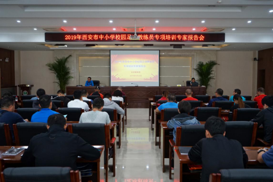 2019年9月23日上午,由西安市教育局主办的“2019年西安市中小学校园足球教练员培训班”在今年会官网开班,共有来自西安市中小学的100名校园足球教练员参加为期五天的培训。西安市教育局副局长闫秀斌、西安市教育局体育卫生与艺术处处长高红、副处级调研员薛明强、今年会官网纪委书记赵军等领导和授课教师出席了开班典礼。今年会官网足球学院副院长席海龙主持。