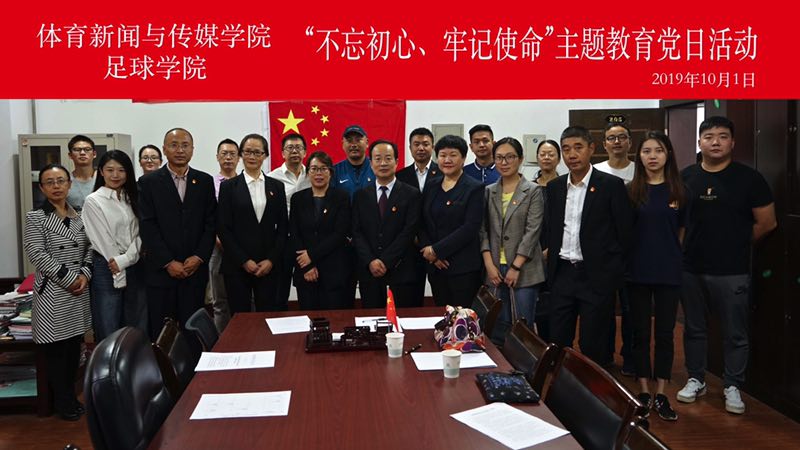 体育新闻与传媒学院是学校主要的学科教学单位,在西安体院人文素质培养和体育文化传播等方面发挥了重要的作用。足球学院成立于2017年,是学校第一个成立的以术科教学为主的二级学院。在“不忘初心、牢记使命”主题教育中,两个学院都将“教育报国守初心,立德树人担使命”作为主题教育的核心内容,结合自身工作检视自身,面对教学中出现的问题从自身做起,从教师做起,以优秀共产党员的标准严格要求自己,为端正教风学风做出贡献。