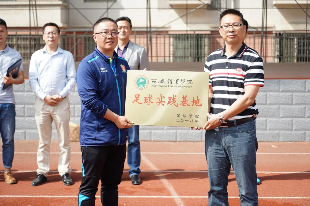 朱军院长和李永主席分别代表合作双方,签署了足球教学实践基地合作协议书,并向铜川市阳光青少年足球俱乐部授牌。授牌结束后,全体人员参观了阳光青少年足球俱乐部的训练,足球学院教师对俱乐部训练进行了指导。