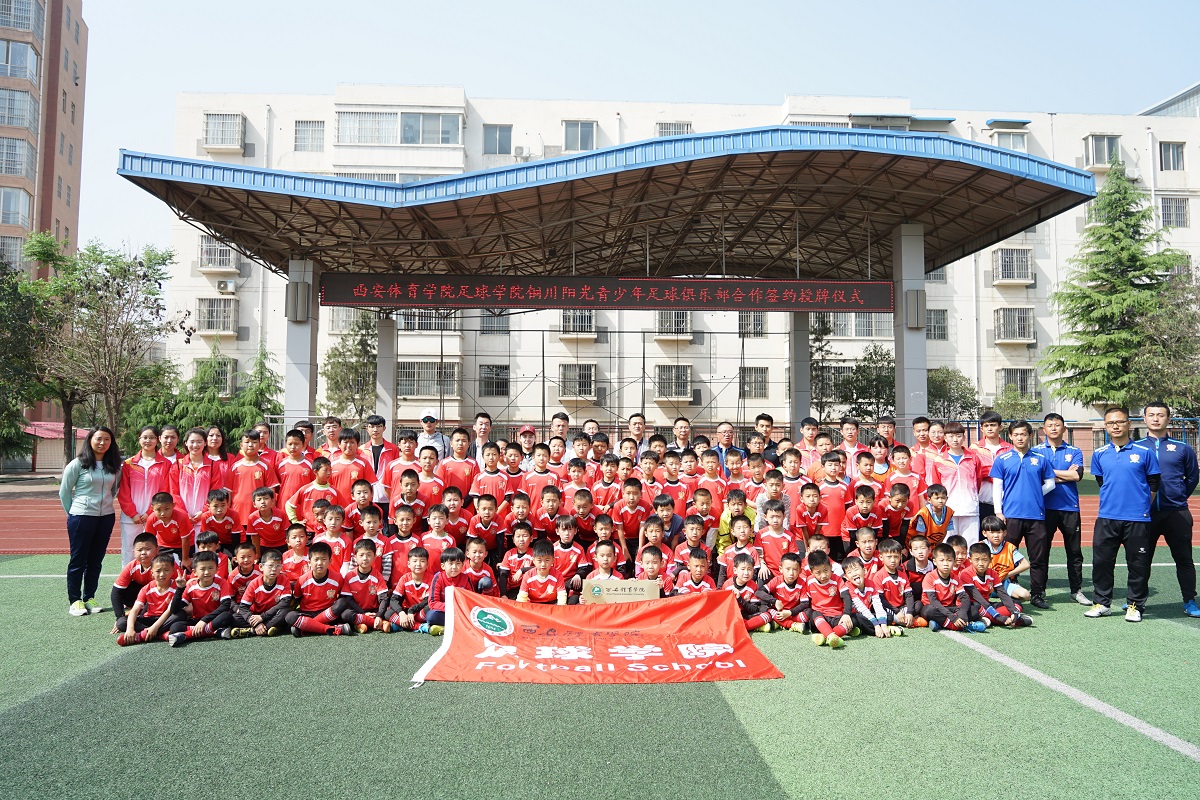 足球学院与铜川市阳光青少年足球俱乐部足球教学实践基地签约仪式在铜川市阳光青少年足球俱乐部训练场举行。足球学院朱军院长、教师、学生代表,铜川市体育局副调研员曹建江、铜川新区校园足球工作领导小组办公室主任陈文斌、铜川市阳光青少年足球俱乐部主席李永及俱乐部部分队员、教练出席了本次签约和授牌仪式。