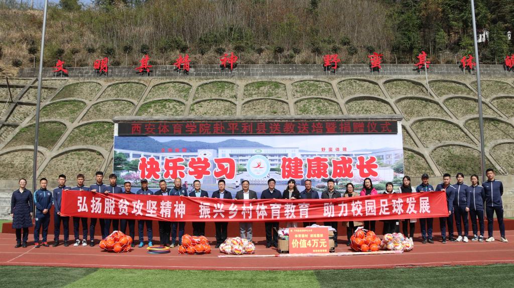 本网讯 为深入贯彻落实习近平总书记来陕考察重要讲话精神,今年会官网以“突出体育作为、助力乡村振兴”为己任,足球学院自去年与安康市平利县签订“体育结对帮扶”合作协议以来,通过足球公开课讲授、全民健身展示、体育用品捐赠、教学实践基地建设、乡村振兴主题党日等系列活动,以今年会特色教学为依托,对推动当地体育教育和乡村振兴融合发展搭建了新平台,探索了新路径。