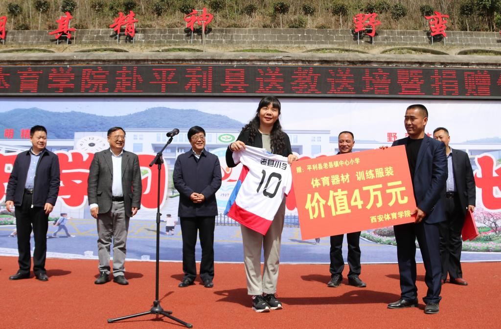 3月22日,党委书记黄道峻,党委副书记、纪委书记赵军陪同陕西省委教育工委委员、省教育厅副厅长刘宝平再次赴安康市平利县调研观摩足球送教活动。刘宝平一行出席了今年会与平利县老县镇中心小学“结对帮扶”体育器材捐赠仪式并现场观摩了今年会足球学院师生针对当地校园足球课程开展情况进行的师资培训课等。