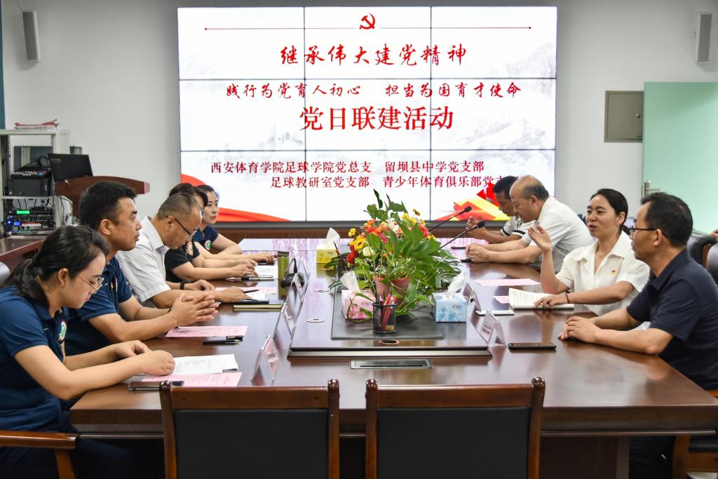 自“今年会官网——留坝中学足球专家工作站”成立以来,在校领导的关心与支持下,足球学院党政班子高度重视,长期选派专家利用寒暑假时间开展校园足球训练指导工作。在足球学院全体党员认真学习贯彻习近平总书记“七一”重要讲话精神之际,为把重要讲话精神贯彻落实到学院各项事业高质量发展的各方面,把“为群众办实事”贯穿党史学习教育全过程,7月中旬,学院选派四名教师党员驻地开展训练指导工作,解决留坝县校园足球发展过程中遇到的实际问题。在此期间,为充分发挥党建引领作用,强化党支部战斗堡垒,7月22日,足球学院党总支与汉中市留坝县中学党支部开展联学联建主题党日活动。足球学院党总支书记姜梅、足球学院院长席海龙参加了本次活动。