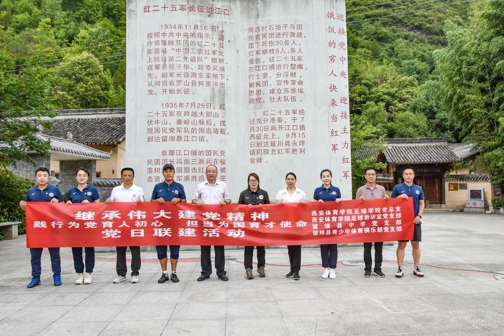 为进一步传承红色基因、弘扬爱国主义精神,足球学院党总支与留坝中学党支部一同来到爱国主义教育基地红二十五军军部江口旧址追寻红色足迹,重温峥嵘岁月。1934年11月16日,按照中共中央的指示,坚守鄂豫皖苏区的红二十五军高举“中国工农红军北上抗日第二先遣队”旗帜,在军长程子华、政委吴焕先、副军长徐海东率领下,从河南省罗山县何家冲出发,开始长征。1935年7月25日,红二十五军在跨越大别山、伏牛山、秦岭山脉后,摆脱国民党军队的围堵追截,到达留坝县江口镇。盘踞江口镇的国民党民团团长冯雨三派兵企图阻击红军,被击溃。红军乘胜追击进行激战,团丁死伤30多人,红军牺牲5人,多人受伤。红二十五军在江口镇进行整编,打土豪、分浮财、剿民团,宣传革命思想,建立苏维埃政权,壮大队伍。1935年7月30日红二十五军离开江口镇西征北上,于1935年9月15日到达延川县永坪镇同陕北红军胜利会师。